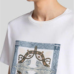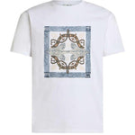 T-shirt bianca girocollo in puro cotone dalla vestibilità regolare caratterizzata da una stampa piazzata con motivo geometrico sul davanti.Composizione: 100% COTONEMade in Italy