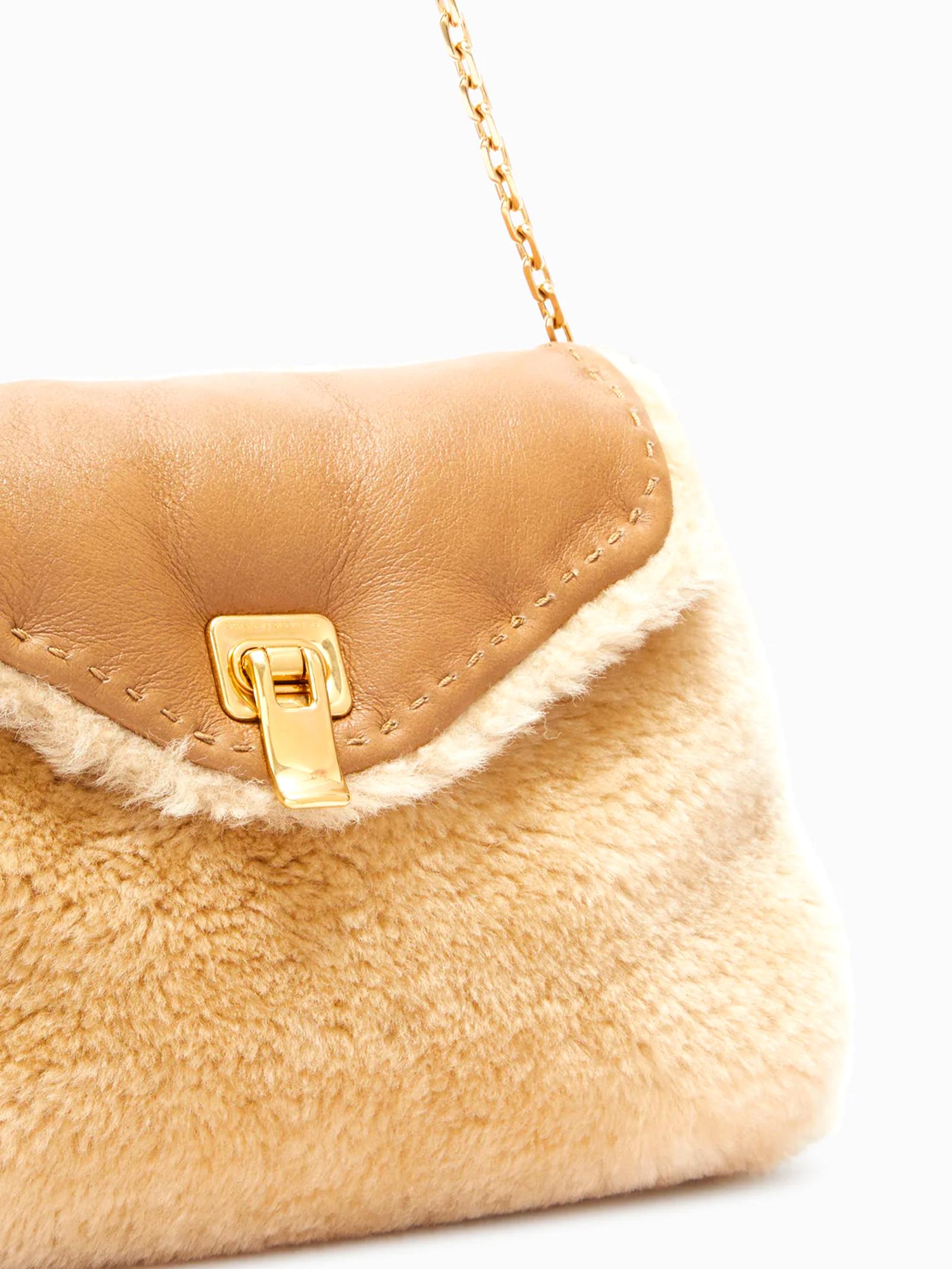 Una nuova idea di eleganza prende forma in Joy, linedita borsa Ermanno Scervino realizzata in morbidissimo shearling sfoderato, con il corpo lasciato al naturale lato pelo e la patta liscia lato buccio, Joy unisce lavorazioni preziose a un design essenziale. Il manico a catena dona un tocco luminoso e contemporaneo, mentre la chiusura a clip e i piedini mezza sfera logati esprimono cura sartoriale in ogni dettaglio. Da portare a mano o a spalla, è laccessorio perfetto per dare calore e raffinatezza ai look invernali.Dimensioni: 35 × 20 × 14 cmComposizione: 100% PELLE DI MONTONEMade in Italy