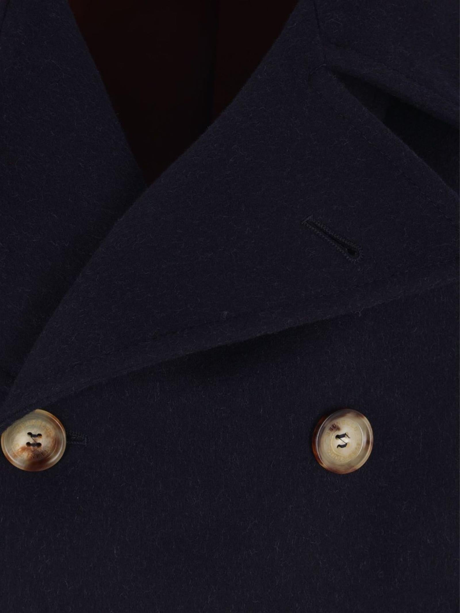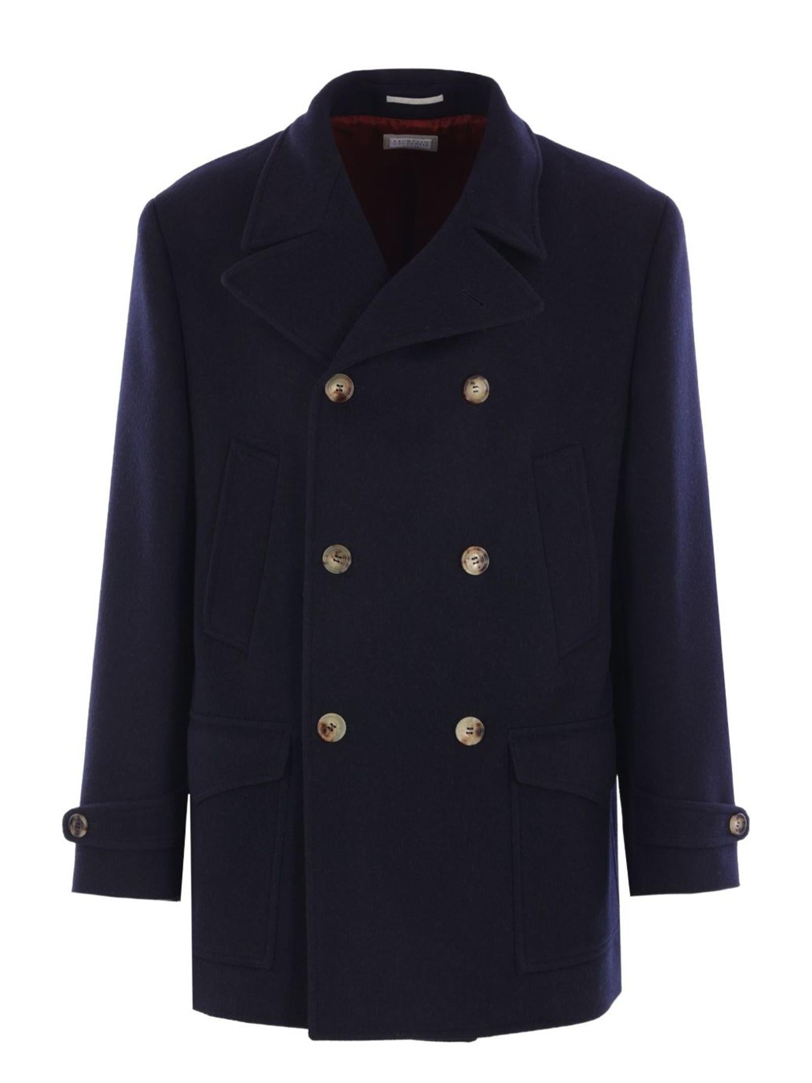Il fascino rétro e casual del caban quattro tasche blu navy si rinnova grazie al pregio dei materiali e dei filati Brunello Cucinelli. Il panno double coniuga le qualità naturali della flanella di lana, calda e avvolgente, con una lavorazione artigianale che conferisce al capo linee impeccabili e un peso contenuto. La vestibilità dritta e squadrata offre volumi regolari e confortevoli.L'effetto lievemente disomogeneo della nuance si diffonde sulla texture della flanella, un tessuto leggero e compatto che esprime perfettamente le qualità superiori della fibra di lana. La sapiente lavorazione double artigianale esalta le qualità del materiale. La fodera in leggerissimo cupro favorisce il comfort all'indosso.Presenta chiusura con bottoni in corno, tasche alte frontali e tasche basse a toppa con patta, polsini con bottone, due tasche interne con chiusura a bottone e tasca portapenna e dopio spacco sul retro.Istruzioni per il lavaggio: Per la pulizia richiedere ai centri specializzati esclusivamente il lavaggio a secco, non candeggiare. Non usare l'asciugatrice, stirare a bassa temperatura.Composizione: 100% LANAMade in Italy