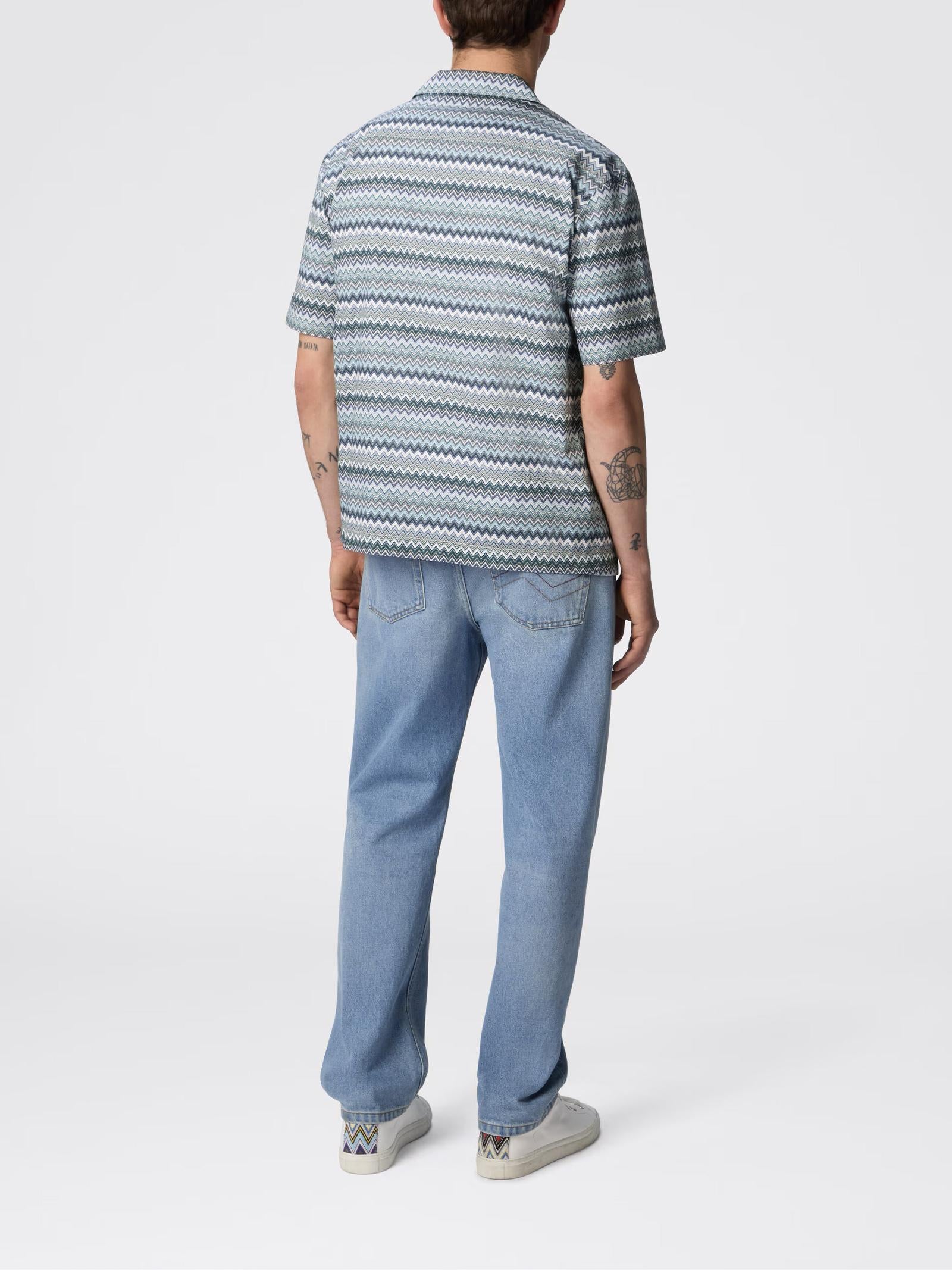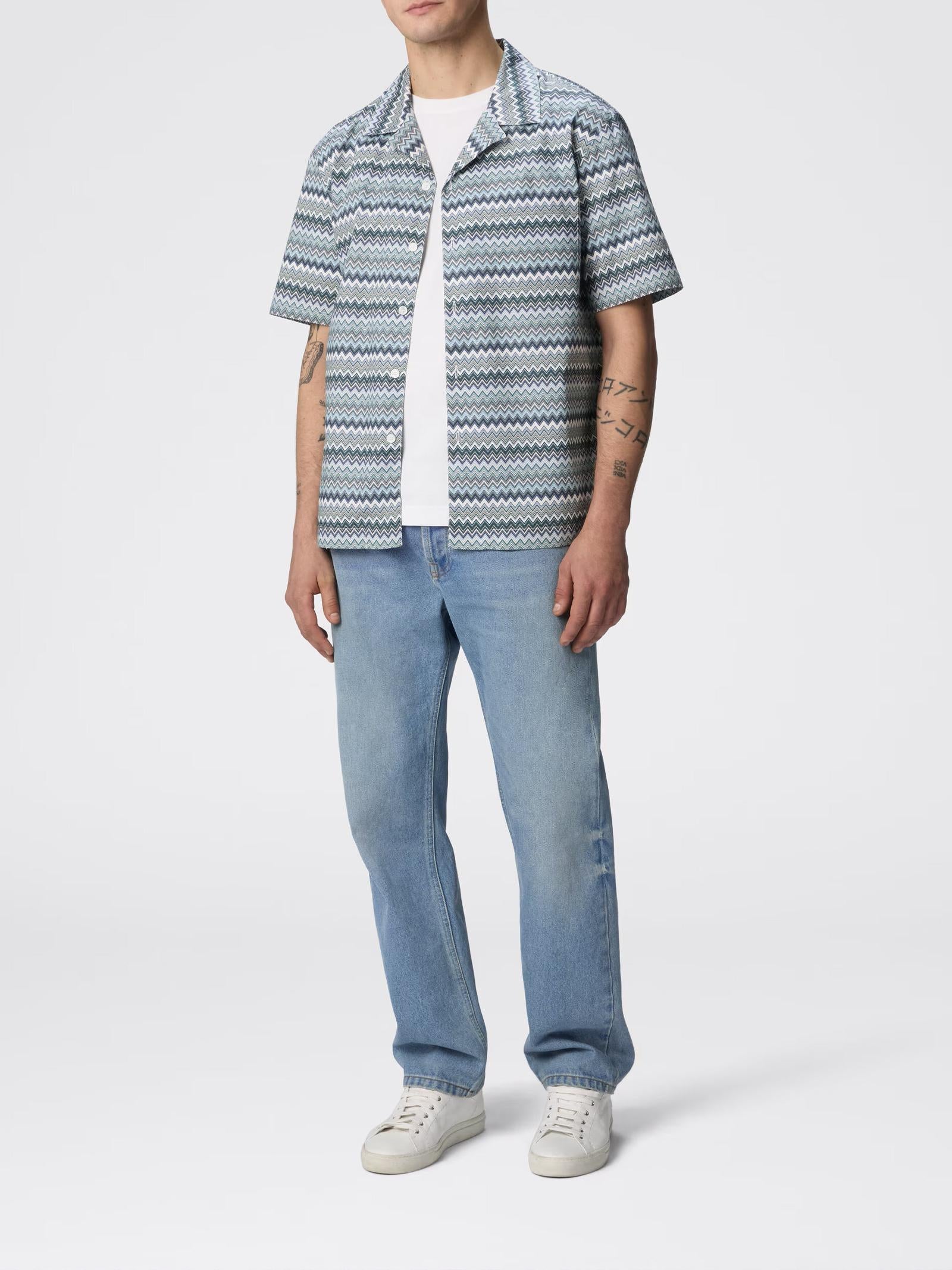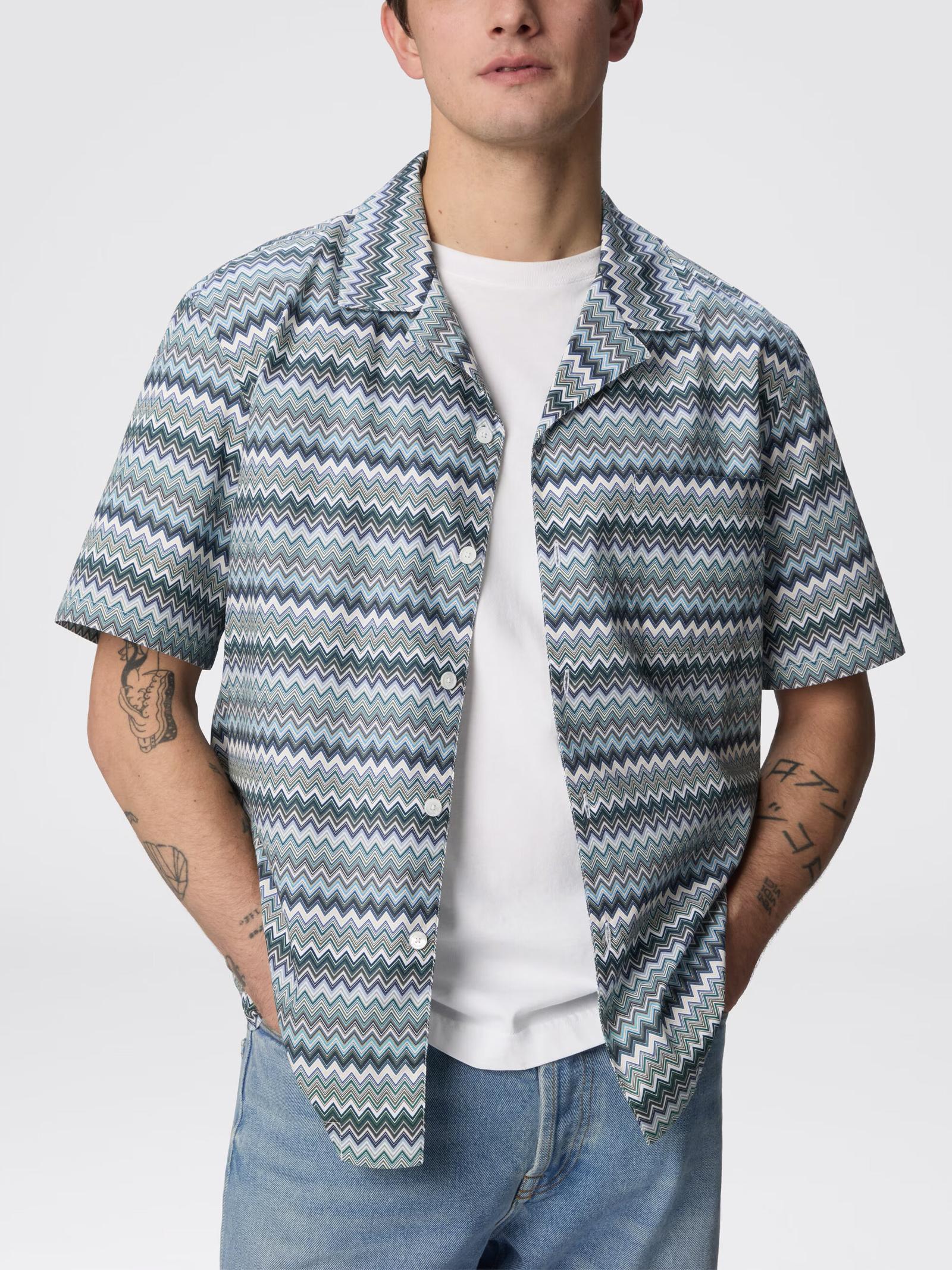 Camicia bowling verde in popeline di cotone contraddistinta dal suo motivo zig zag che dona un tocco di originalità a una silhouette tradizionale. Il taschino frontale aggiunge un dettaglio funzionale, mentre la freschezza del popeline garantisce un comfort impeccabile.Istruzioni per il lavaggio: Utilizzare asciugatrice a temperatura bassa; Stirare a temperatura massima 110 °C; Non lavare a secco; Non trattare con cloro; Lavare delicatamente max 40°C.Composizione: 100% COTONEMade in Romania