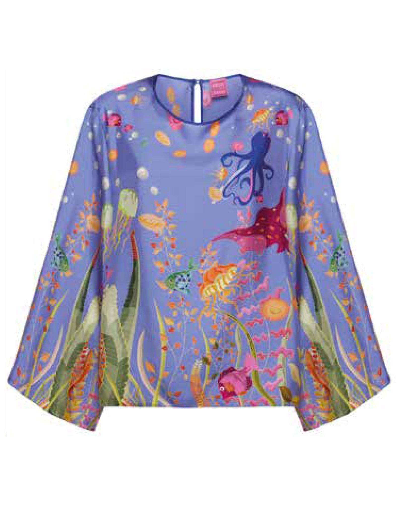 Camicia a maniche larghe in seta. Stampa a sottomarino.Istruzioni per il lavaggio: solo lavaggio a seccoComposizione: 100% SETAMade in Italy