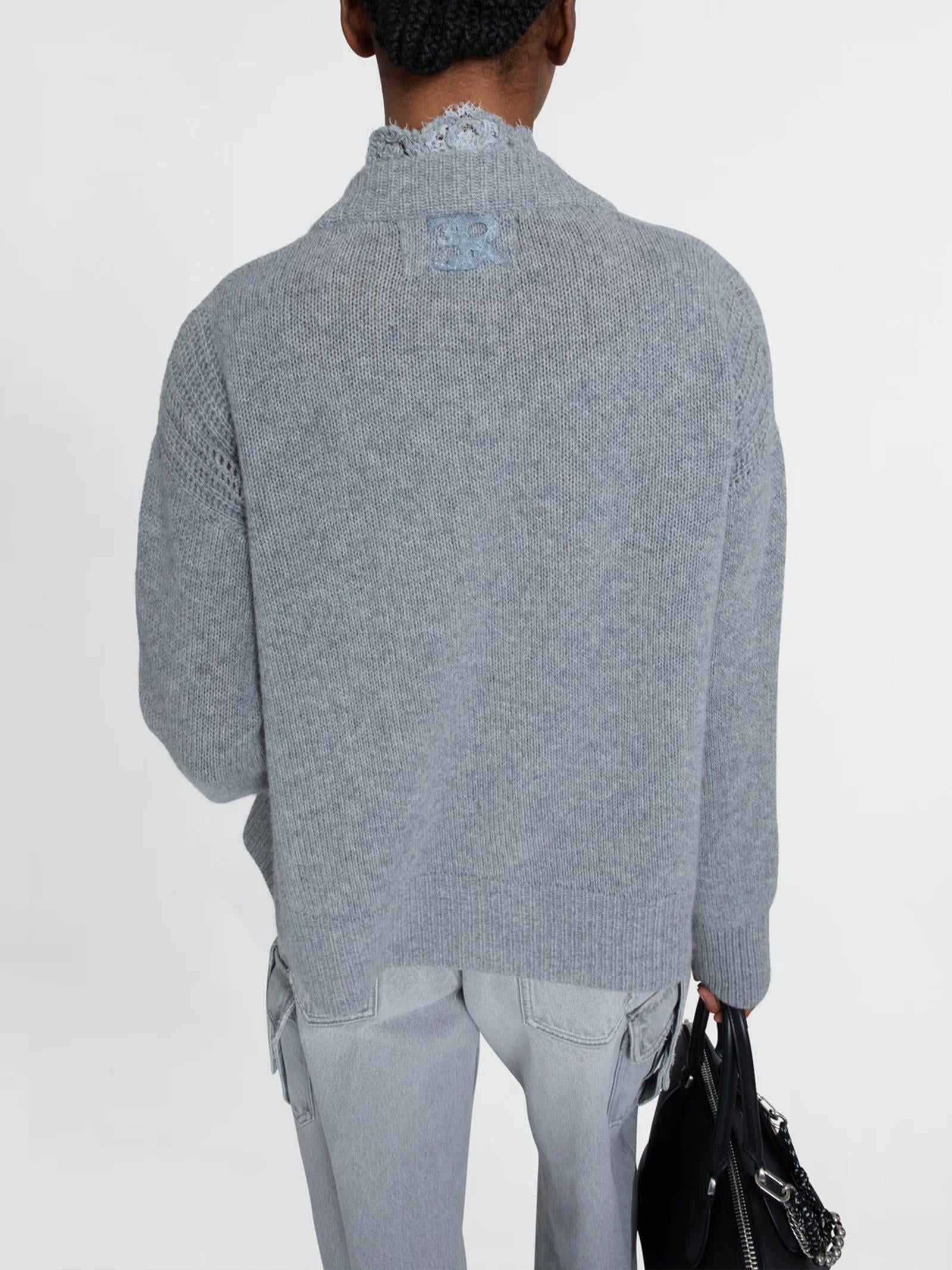 Ricercato e femminile, questo cardigan in puro cashmere incarna leleganza senza tempo della maglieria firmata Ermanno Scervino. La silhouette classica con scollo a V e maniche lunghe è impreziosita da un'applicazione di pizzo rebrodè in tono, che segue labbottonatura e il profilo dello scollo. Il motivo floreale, esclusivo della maison, aggiunge un tocco romantico e sofisticato, creando un raffinato contrasto materico con la morbidezza piena del cashmere.I bordi fondo, scollo e polsini sono rifiniti con una lavorazione a costina stretta che garantisce aderenza ed elasticità, valorizzando la costruzione del capo. I bottoni frontali, rivestiti nello stesso materiale e tono su tono, assicurano continuità cromatica ed eleganza discreta. Completano il design due piccole tasche applicate sui fianchi, che aggiungono una nota pratica e bilanciano visivamente la linea.Perfetto in abbinamento al top coordinato con pizzo sul fondo per comporre un twin set dallo stile armonioso e raffinato, questo cardigan è pensato per esprimere la quintessenza del knitwear dautore.La vestibilità di questo capo è leggermente over, si consiglia di acquistare una taglia inferiore rispetto a quella abituale per un fitting più regular.Composizione: 100% CASHMEREMade in Italy