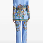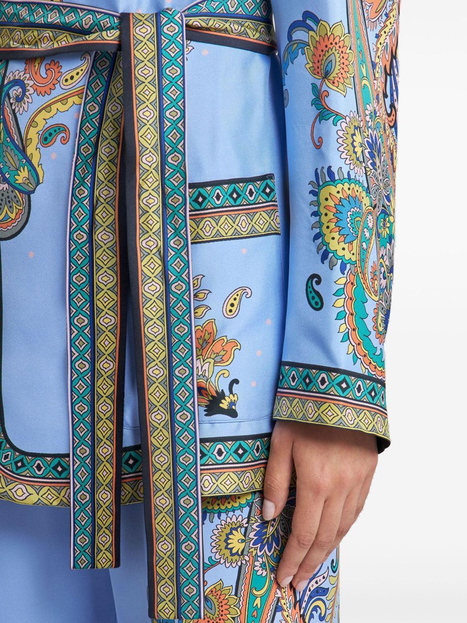 Giacca in stile vestaglia con cintura rimovibile al punto vita, realizzata in twill di pura seta e foderato nello stesso materiale. Caratterizzata da una stampa piazzata con motivo Paisley floreale a contrasto e un micro motivo medaglioni lungo i bordi esterni e sulla cintura. Presenta inoltre una vestibilità regolare e tasche frontali applicate.Composizione: 100% SETAFodera: 100% SETAMade in Italy