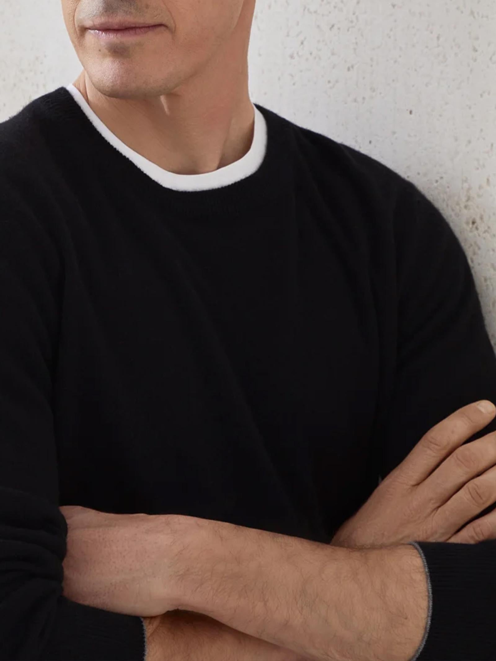 La maglia nera girocollo a costina in puro cashmere rappresenta un capo iconico delle collezioni Brunello Cucinelli. La qualità superiore della fibra naturale del cashmere esalta la vestibilità confortevole con un effetto leggero e allo stesso tempo avvolgente. I bordi dei polsini e il profilo interno del girocollo in nuance a contrasto completano lo stile del capo con dettagli ricercati.La nobile fibra del cashmere si caratterizza per l'estrema finezza e per le preziose qualità termoisolanti che garantiscono allo stesso tempo calore, protezione e leggerezza all'indosso. Caratterizzata da maglia rasata e polsini e fondo in maglia a costinaIstruzioni per il lavaggio: Lavare solo a mano, non candeggiare. Asciugare il capo su un piano orizzontale, non usare l'asciugatrice. Stirare a bassa temperatura. In alternativa pulire il capo con lavaggio a secco delicato.Composizione: 100% CASHMEREMade in Italy