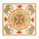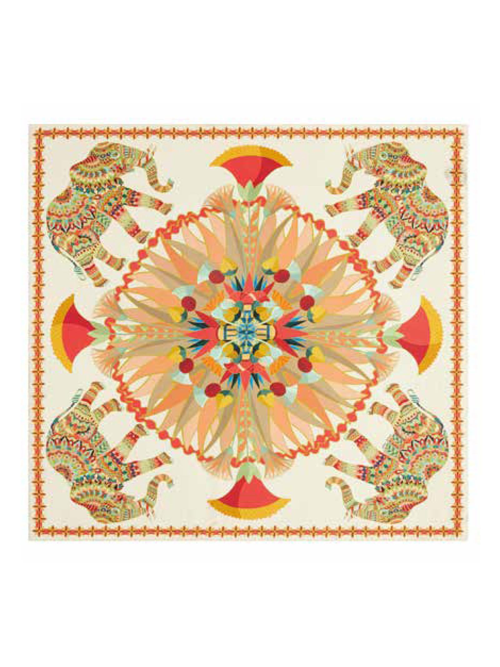 Foulard quadrato in seta 90x90 con orlo arrotolato a mano. Stampa elefanti.Istruzioni per il lavaggio: solo lavaggio a seccoComposizione: 100% SETAMade in Italy