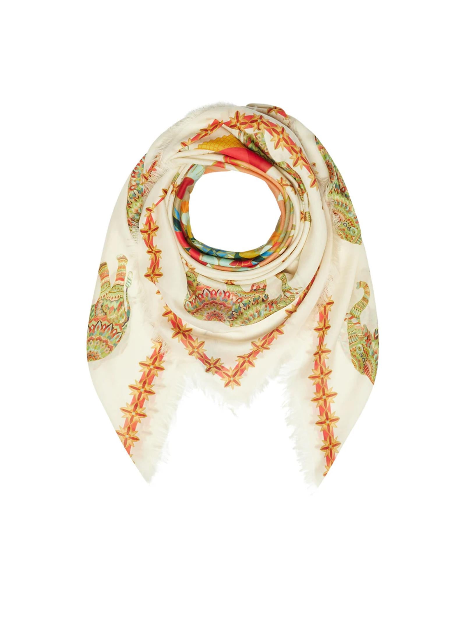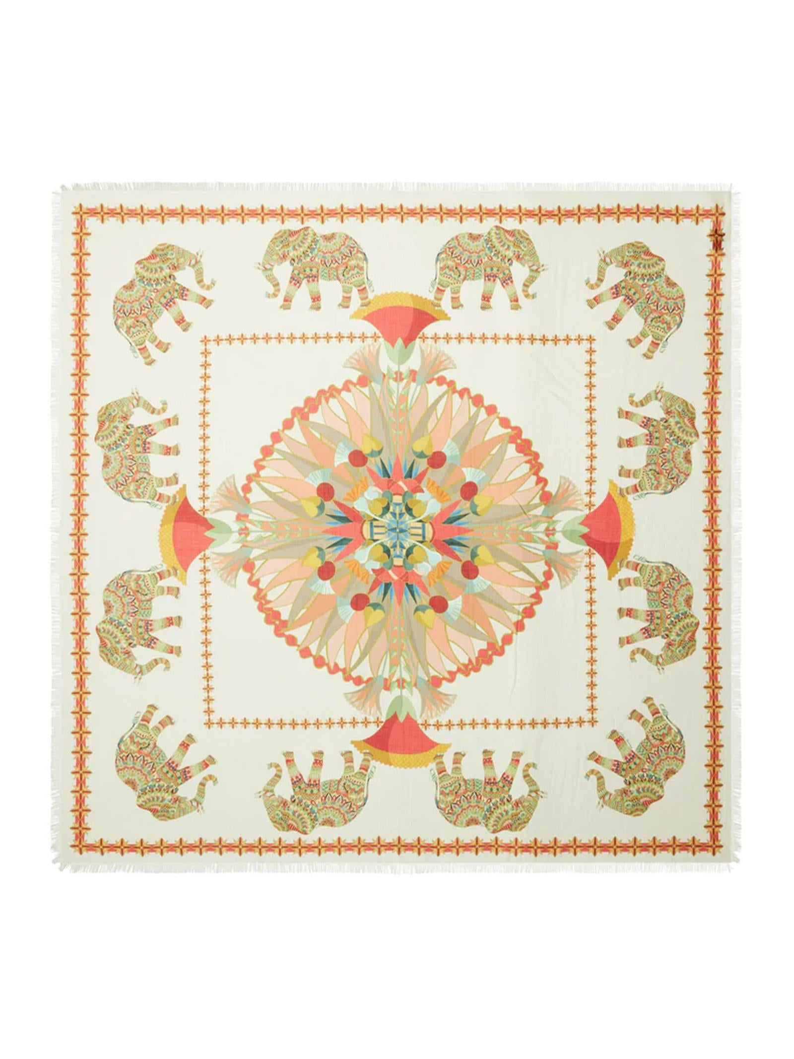 Sciarpa quadrata misto cotone e seta 135x135. Stampa elefanti.Istruzioni per il lavaggio: solo lavaggio a seccoComposizione: 70% COTONE, 30% SETAMade in Italy
