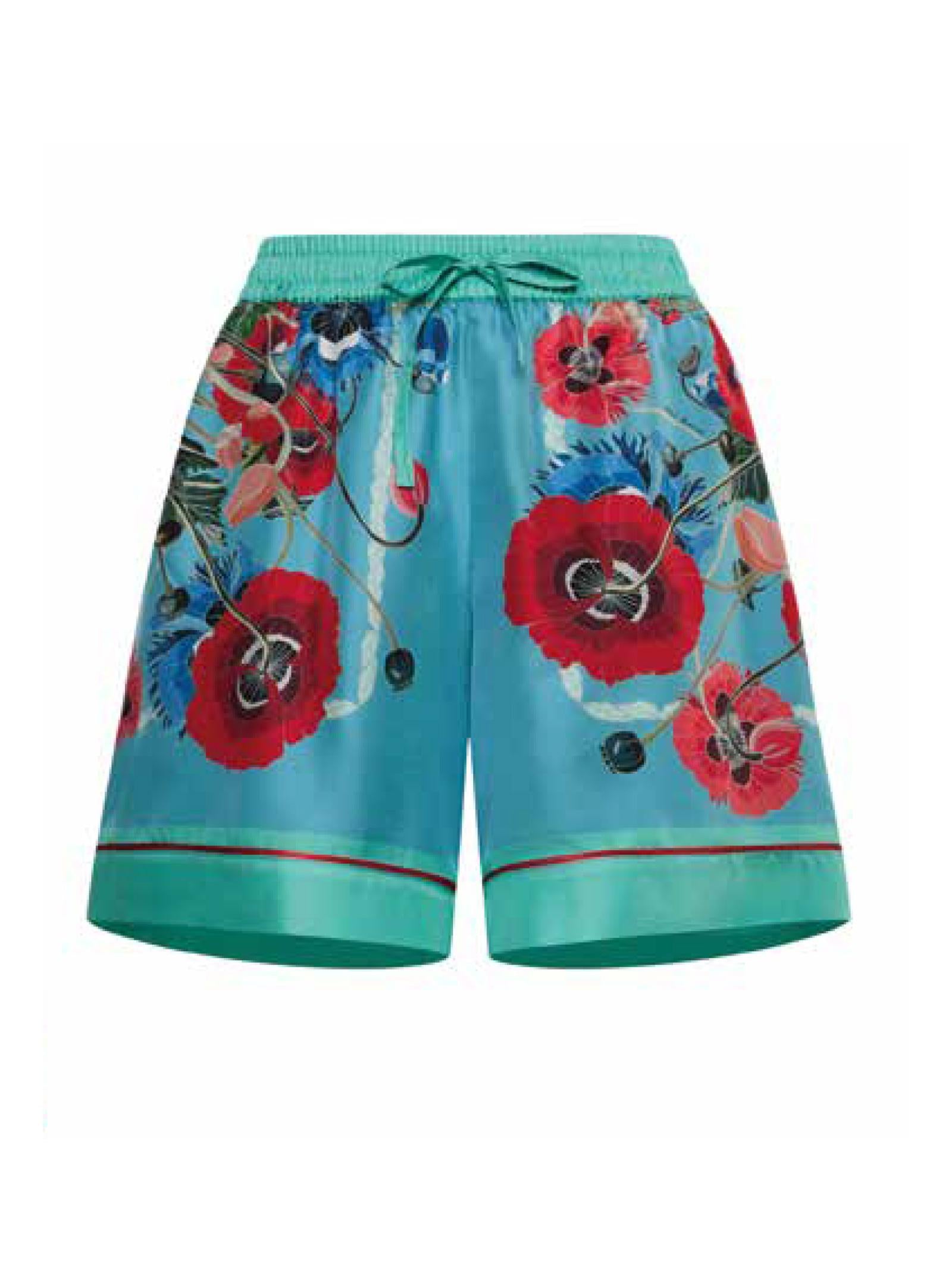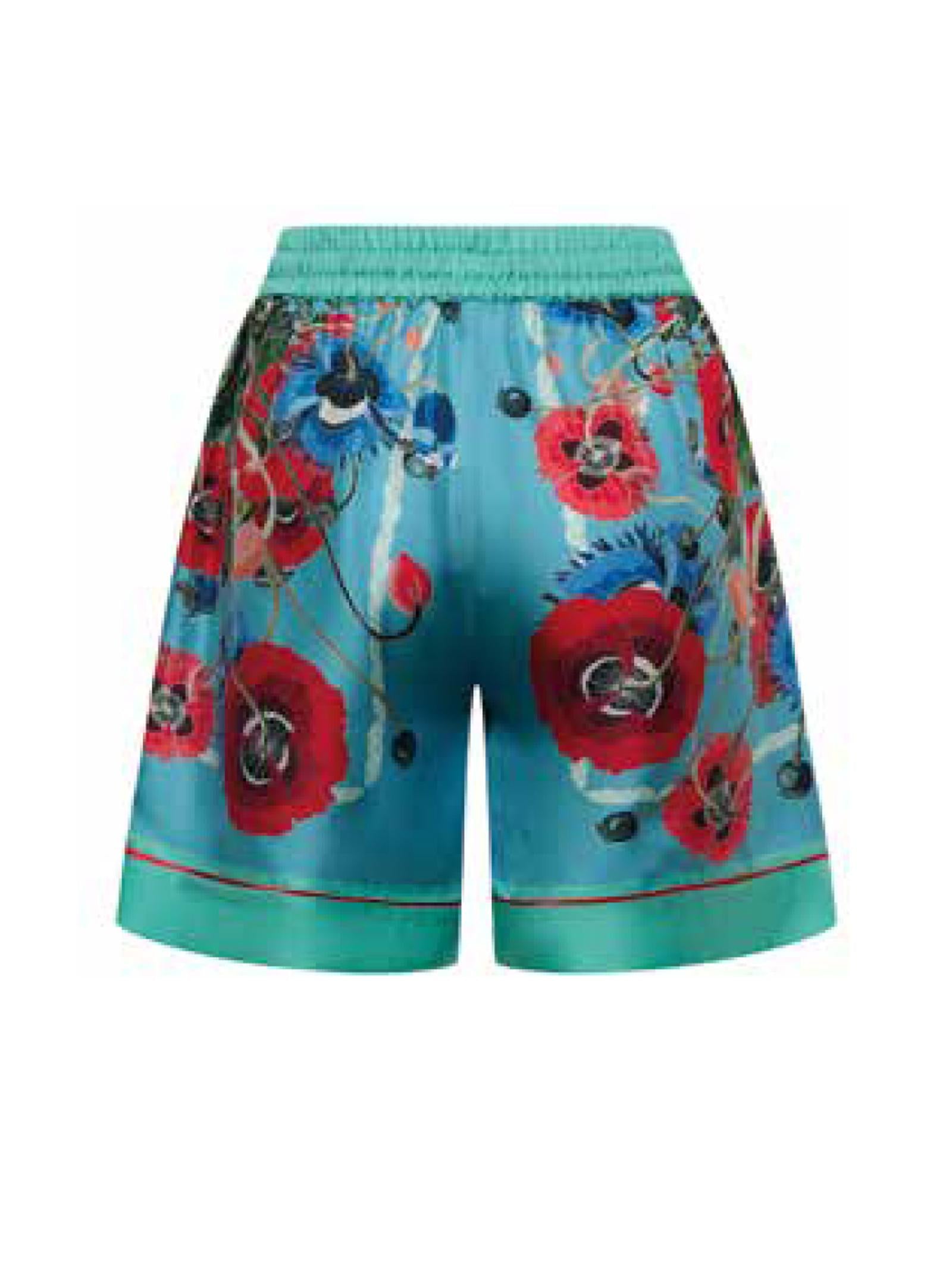Shorts in seta. Stampa papaveri rossi.Istruzioni per il lavaggio: solo lavaggio a seccoComposizione: 100% SETAMade in Italy