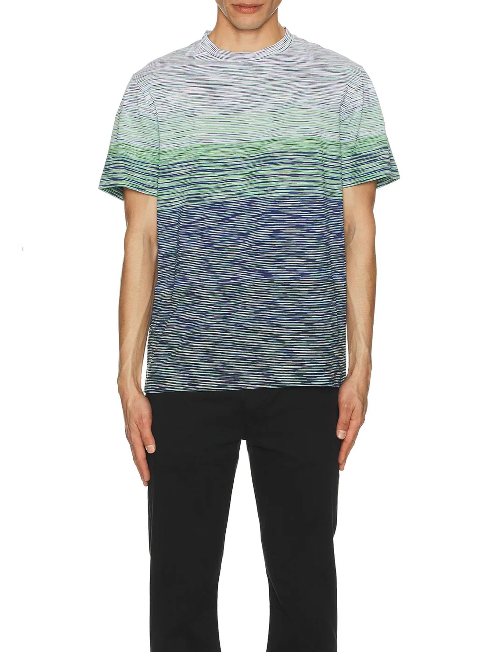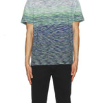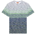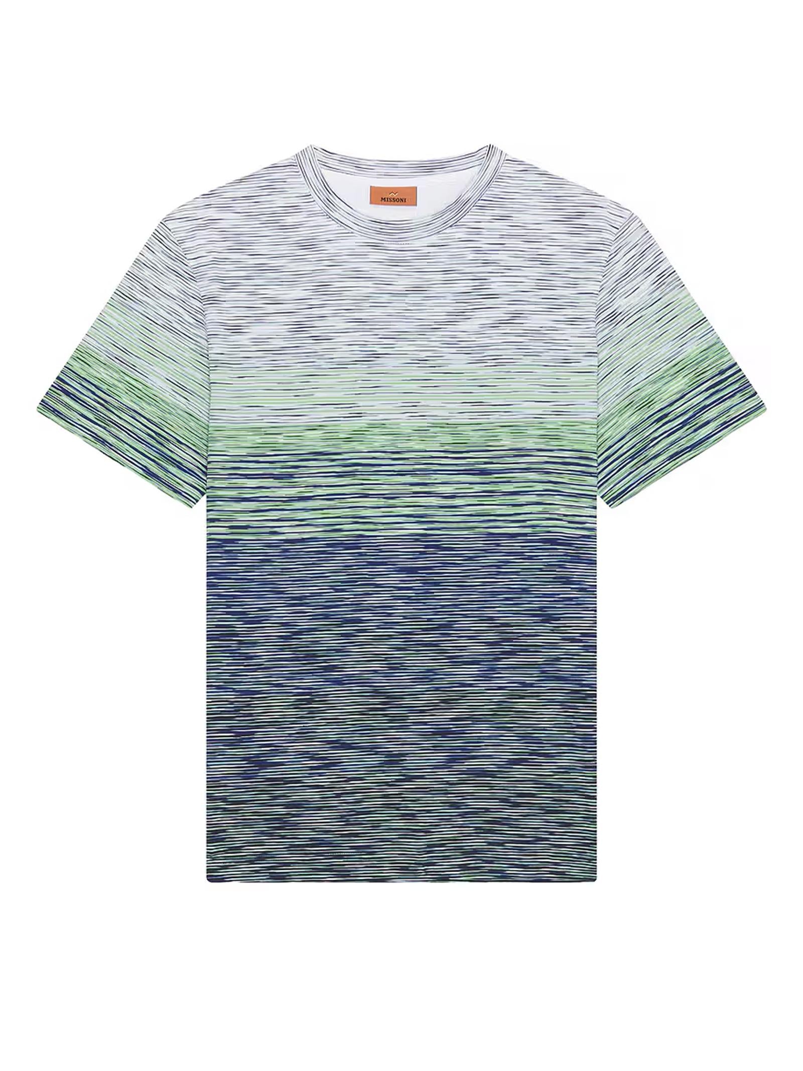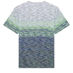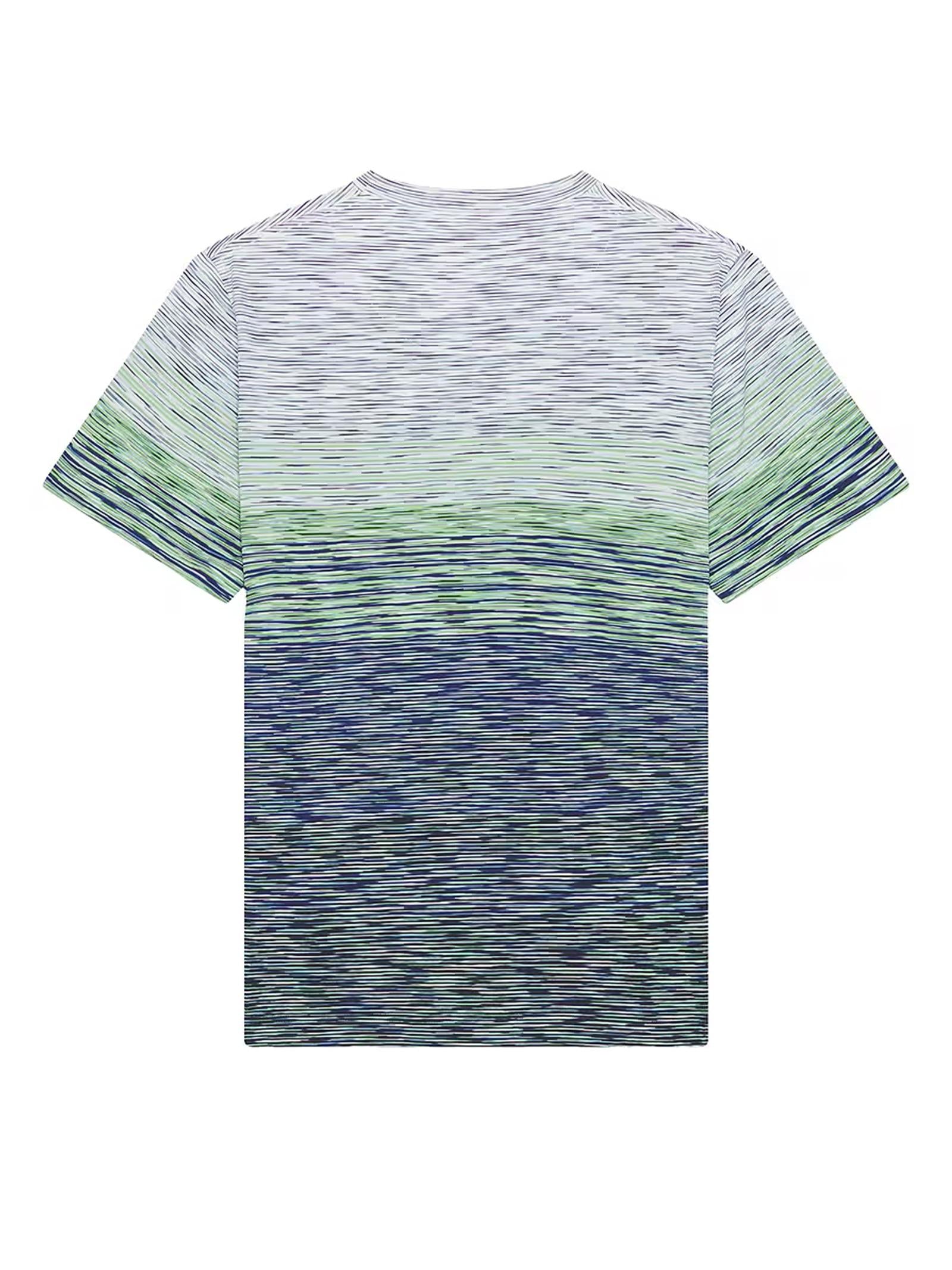 T-shirt in cotone fiammato blu degradé dalla vestibilità standard pensata per l'uso quotidiano, presenta un accattivante motivo fiammeggiante degradé che aggiunge un tocco di unicità. Composizione: 100% cotone Made in Romania